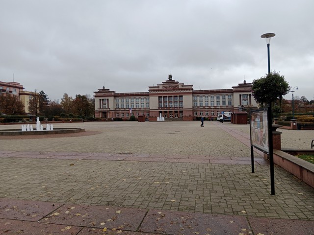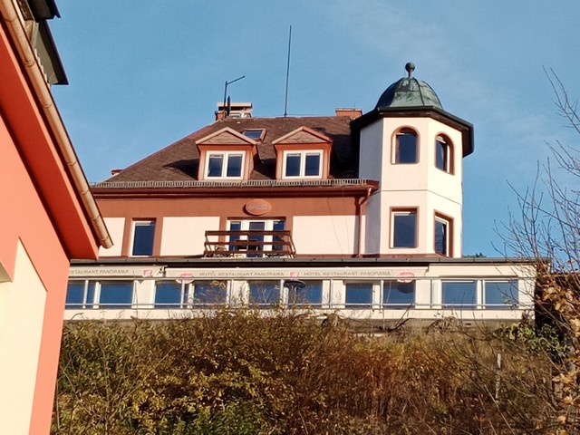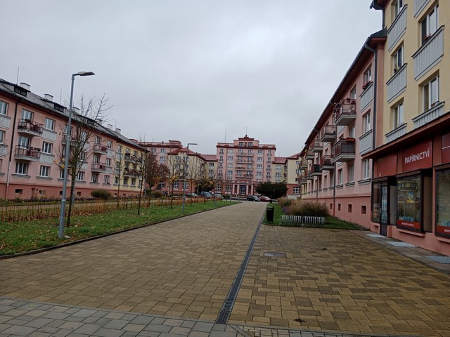 uprostřed škola a pod ní vlevo hotel Praha s Curie