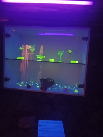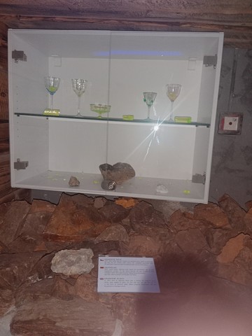 i takové sklo se tu vyrábělo , v noci slabě světélkovalo (vlivem uranové rudy)